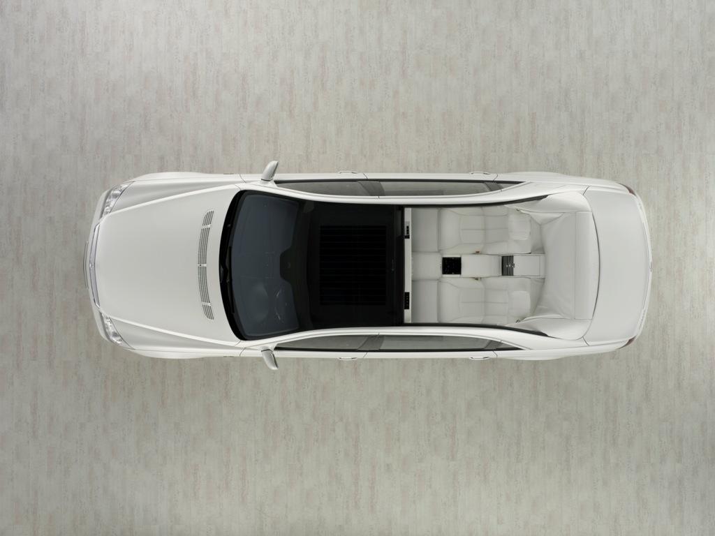 Pero lo mas destacable es el lujo del que hace gala, sobre todo en la parte de los asientos traseros, (porque este es un coche para ir con conductor), y a destacar el llamativo techo