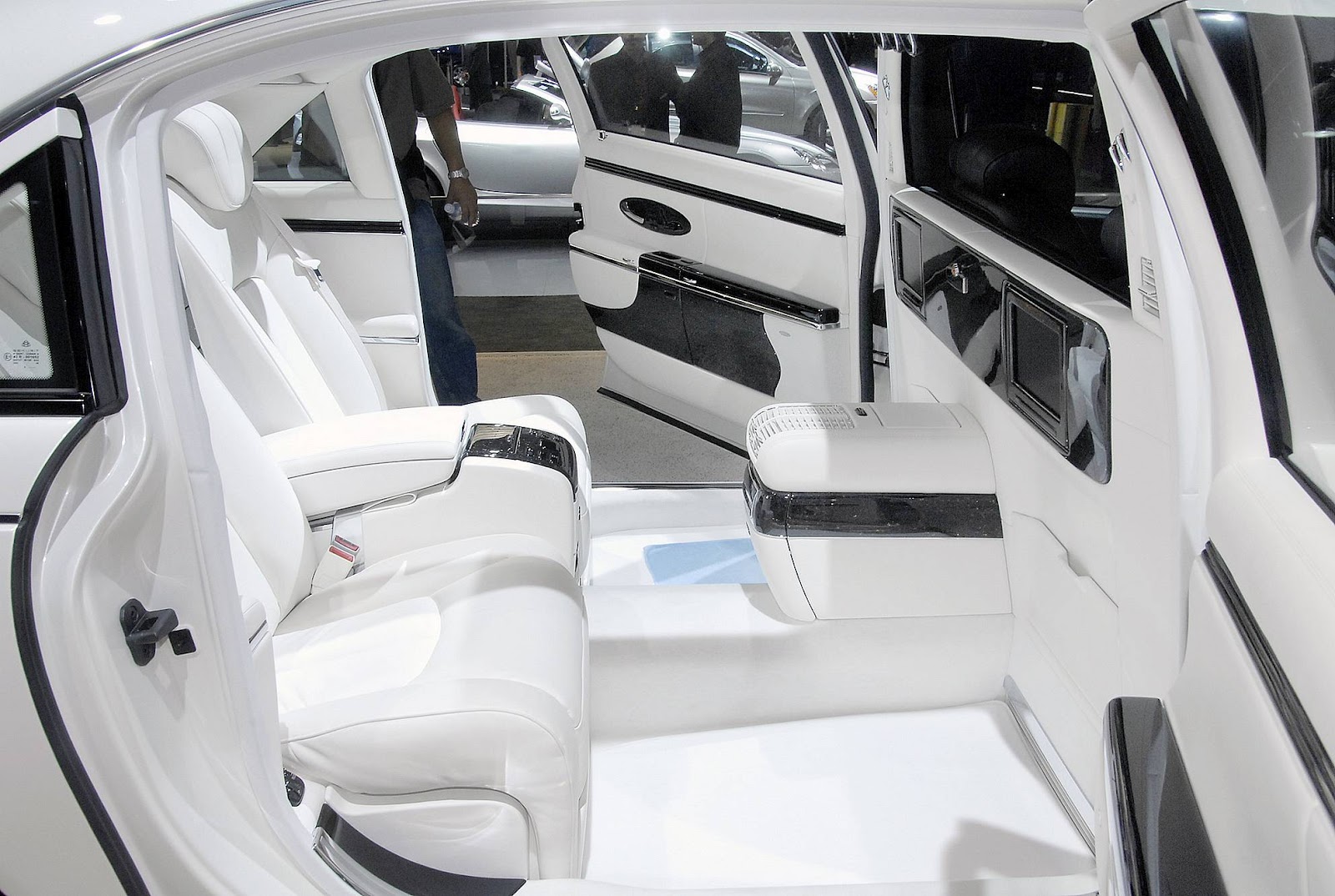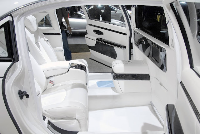 Pero lo mas destacable es el lujo del que hace gala, sobre todo en la parte de los asientos traseros, (porque este es un coche para ir con conductor), y a destacar el llamativo techo